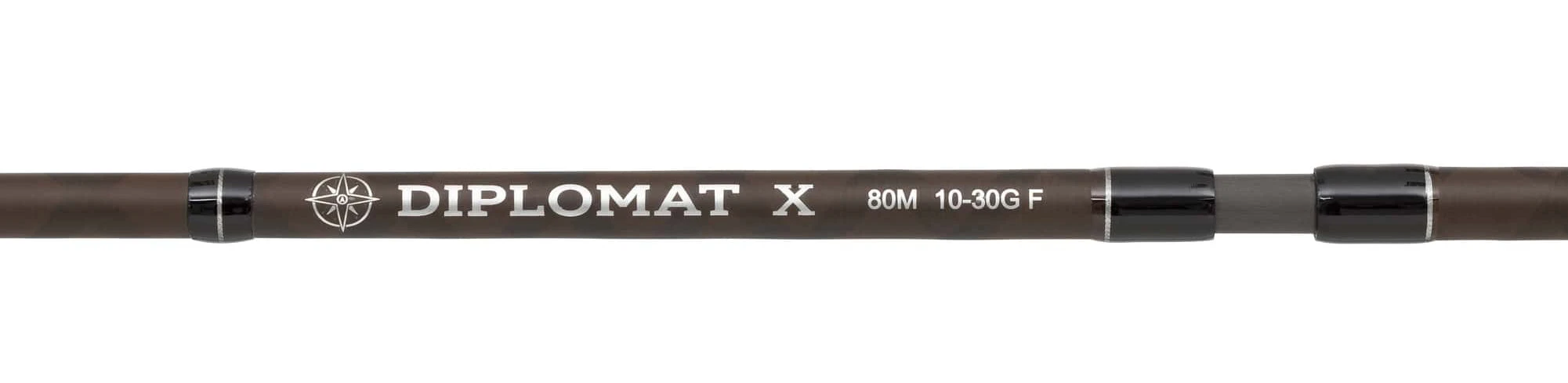 Deze Diplomat X zijn compacte spinhengels die bestaan uit 4 delen. De krachtige carbon blanks zijn beperkt in gewicht en hebben een mooie, snelle actie, geschikt voor alle moderne kunstaastechnieken. Afgewerkt met hoogwaardige Fuji geleideogen en een stevige ergonomische molenhouder. Het handdeel bestaat uit kurk en EVA, om optimale grip te garanderen. Geleverd in een stevige koker en past in ieders bagage.
