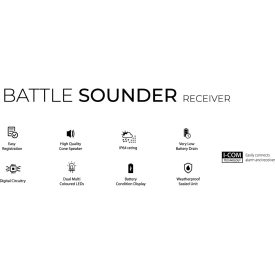 De ontwikkeling van onze nieuwe 2+1 beetmelderset heeft dan wel een kleine zes jaar geduurd, maar nu is hij er: De misschien wel beste beetmelder op de markt! De beetmelders kunnen zeer eenvoudig,dankzij de I-Com Technologie, met de meegeleverde ontvanger verbonden worden. Doordat de Battle Sounder is voorzien van de meest moderne en innovatieve techniek, laat deze voor de moderne meervalvisser niets meer te wensen over. Uiterst nauwkeurig en voor iedere situatie inzetbaar, vanaf nu mis je gegarandeerd geen aanbeet meer! De zeer innovatieve adapter, waarmee de beetmelder zeer snel geplaatst of verwijderd kan worden, is maar een van de vele kenmerken. Binnen zeer korte tijd kan de beetmelder van de hengelblank verwijderd worden, zo kan er supersnel gereageerd worden en kan de beetmelder door deze eenvoudig te draaien, gemonteerd of verwijderd worden. Naar wens kan de adapterplaat na het vissen op de hengelblank gemonteerd blijven. De beetmelders kunnen dan eenvoudig in de meegeleverde hardcase opgeborgen worden. Regen, wind, stof en koude trotseert de Battle Sounder zonder problemen. Door een IPP test (Ingress Protection Code – bescherming tegen indringen van water en stof) in de klasse 6 is vastgesteld dat de beetmelder water- en stofdicht is. De complete behuizing is verzegeld en daarmee hebben inwerkingen van buitenaf geen invloed op de beetmelder. Toonhoogte en gevoeligheid kunnen in acht verschillende instellingen aangepast worden en de alarm-LED kan in verschillende kleuren geprogrammeerd worden. Zo gauw de beetmelder aan de opgestelde en op spanning gebrachte meervalhengel geactiveerd is, meet deze zelf de hoek waaronder de op spanning gebrachte hengels staat en kan op elk moment het alarm af laten gaan. De fijn- afstelling, onder invloed van de wind, golven en bewegingen van de aasvis, gebeurt dan door de sportvisser zelf d.m.v. de smart touch modus. De Battle Sounder beschikt over een digitale, dynamische beetherkenning, een zeer gevoelig instelbaar neigingsalarm en een terugstootalarm – ook wel snapback alarm genoemd. Een highlight is de in de Battle Sounder ingebouwde bootmodus, die het de visser mogelijk maakt om de gevoeligheid d.m.v.vier instellingen te reguleren, een erg handige functie wanneer je met hengels op een schommelende boot aan het vissen bent. Middels de hoogwaardige, conische luidspreker kan de geluidssterkte naar wens ingesteld worden om de alarmtoon weer te geven. De beetmelder kan ook in een stille modus gezet worden, de aanbeet wordt dan weergegeven door de LEDs op de ontvanger. Het apparaat beschikt bovendien over een nachtlichtfunctie. De Battle Sounder verbruikt zeer weinig energie en heeft een geïntegreerd waarschuwingssignaal wanneer de batterijspanning te laag wordt.